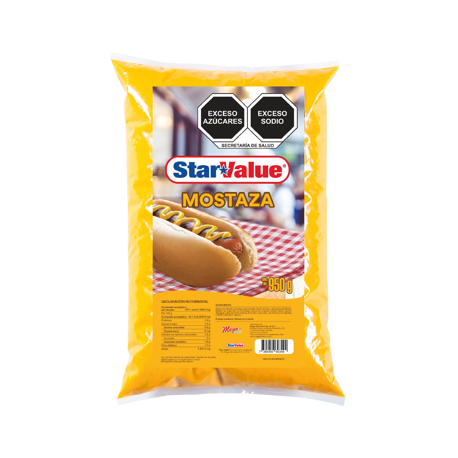 Características Principales:Sabor Intenso y Distintivo: La Mostaza Star Value se destaca por su sabor intenso y distintivo, que añade una nota picante y sabrosa a tus platillos favoritos.Formato Menudeo: Con un envase de 950 gramos, esta mostaza es ideal para uso doméstico, pequeños negocios o eventos, garantizando frescura y calidad en cada aplicación.Versatilidad Culinaria: Puede utilizarse como condimento para sándwiches, aderezo para ensaladas, acompañamiento de carnes, ingredientes en salsas y más, ofreciendo un toque de sabor único en cada preparación.Calidad y Valor: La Mostaza Star Value ofrece una combinación de calidad y buen precio, asegurando un condimento sabroso y accesible para tus necesidades culinarias.