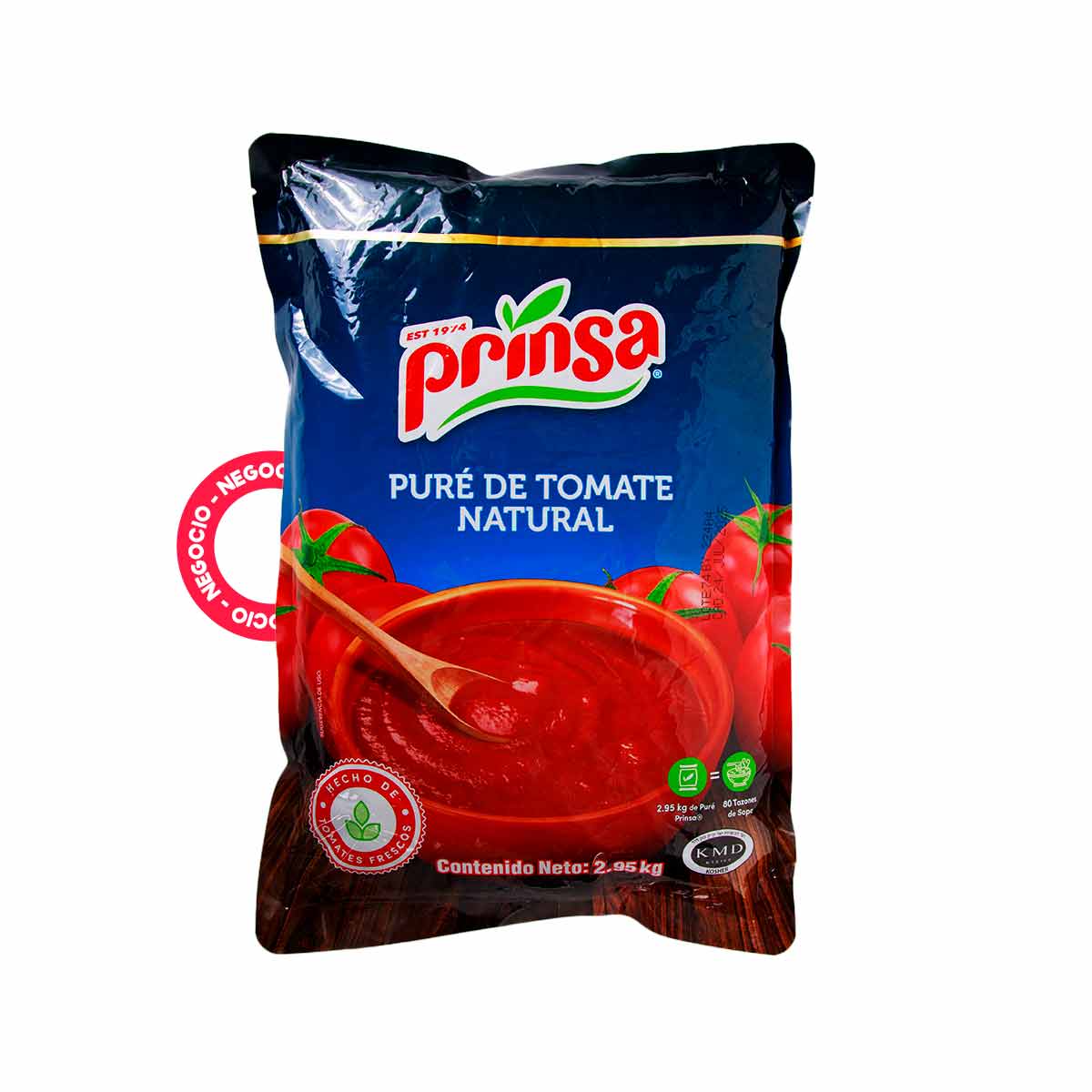El puré de tomate Prinsa se destaca por su calidad y sabor auténtico de tomate fresco, ideal para una variedad de preparaciones culinarias. Presentado en una bolsa de 2.950 kg, es una opción conveniente para uso doméstico y en establecimientos de alimentos.