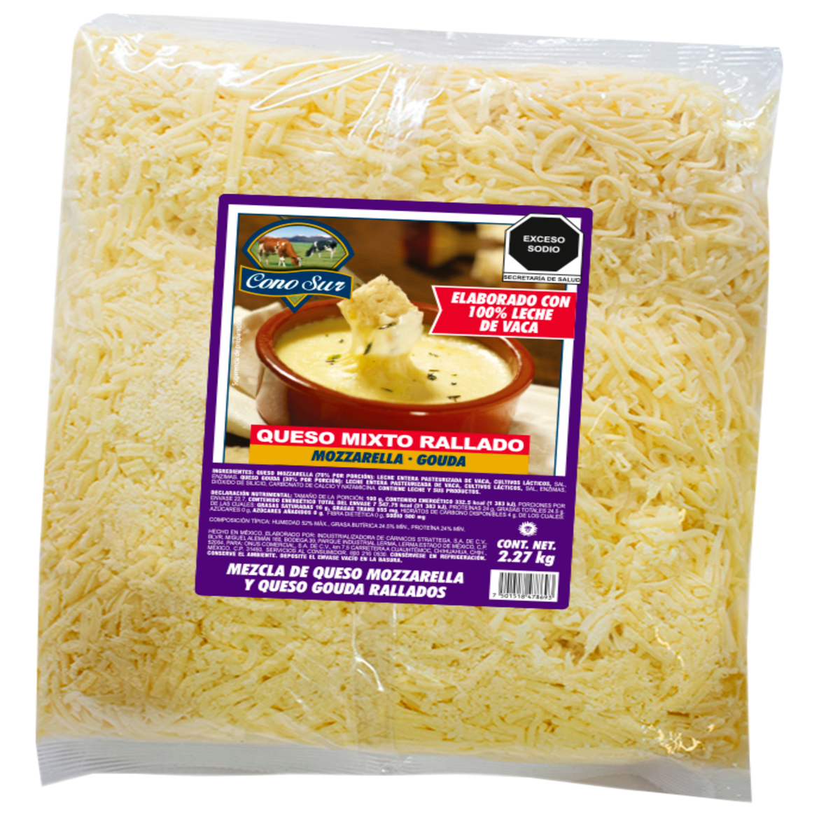 Mezcla de Quesos: Combina el sabor intenso del gouda con la cremosidad de la mozzarella, ofreciendo un equilibrio de sabores en cada bocado.Textura Rallada: Al venir rallado, facilita su uso en una variedad de platillos como pizzas, pasta, ensaladas, sándwiches y más.Versatilidad Culinaria: Es perfecto para gratinar, fundir en quesadillas o nachos, añadir a sopas y guisos, o simplemente como acompañamiento en tablas de quesos.Presentación Económica: La bolsa de 2.27 kg es conveniente para establecimientos que requieren grandes cantidades de queso rallado de calidad.Usos Recomendados: