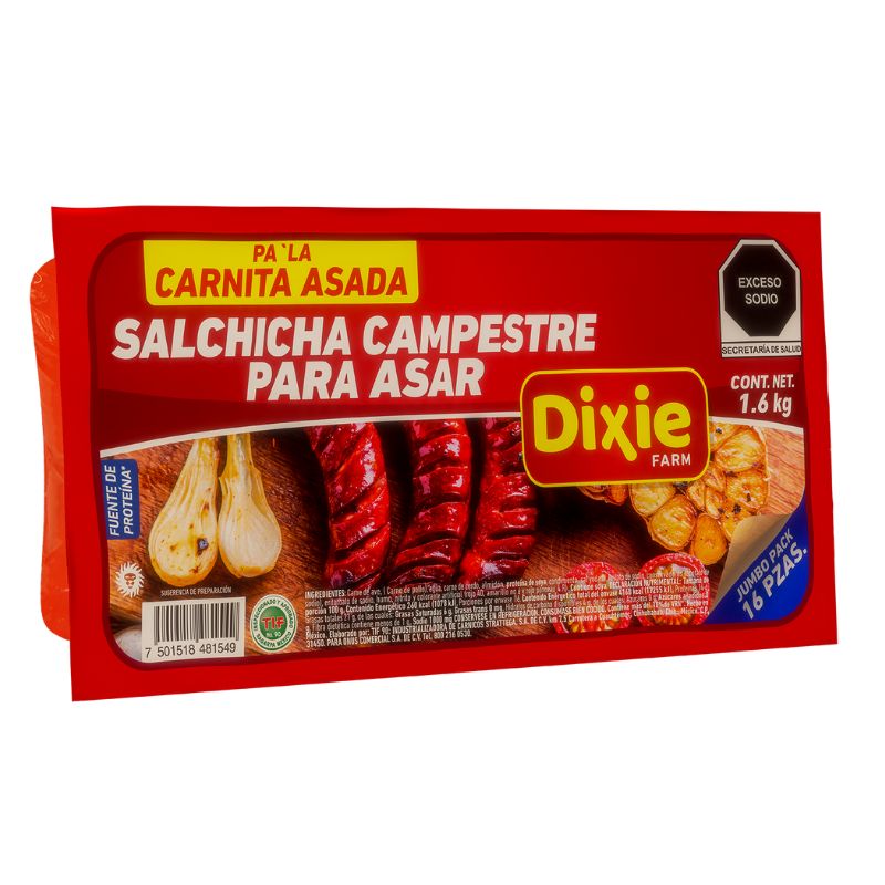La Salchicha para Asar de 16 piezas es un producto diseñado específicamente para la parrilla, con un formato ideal para preparar en reuniones y eventos al aire libre. Está elaborada con una mezcla de carnes seleccionadas y condimentos que realzan su sabor al ser cocinada a la parrilla.