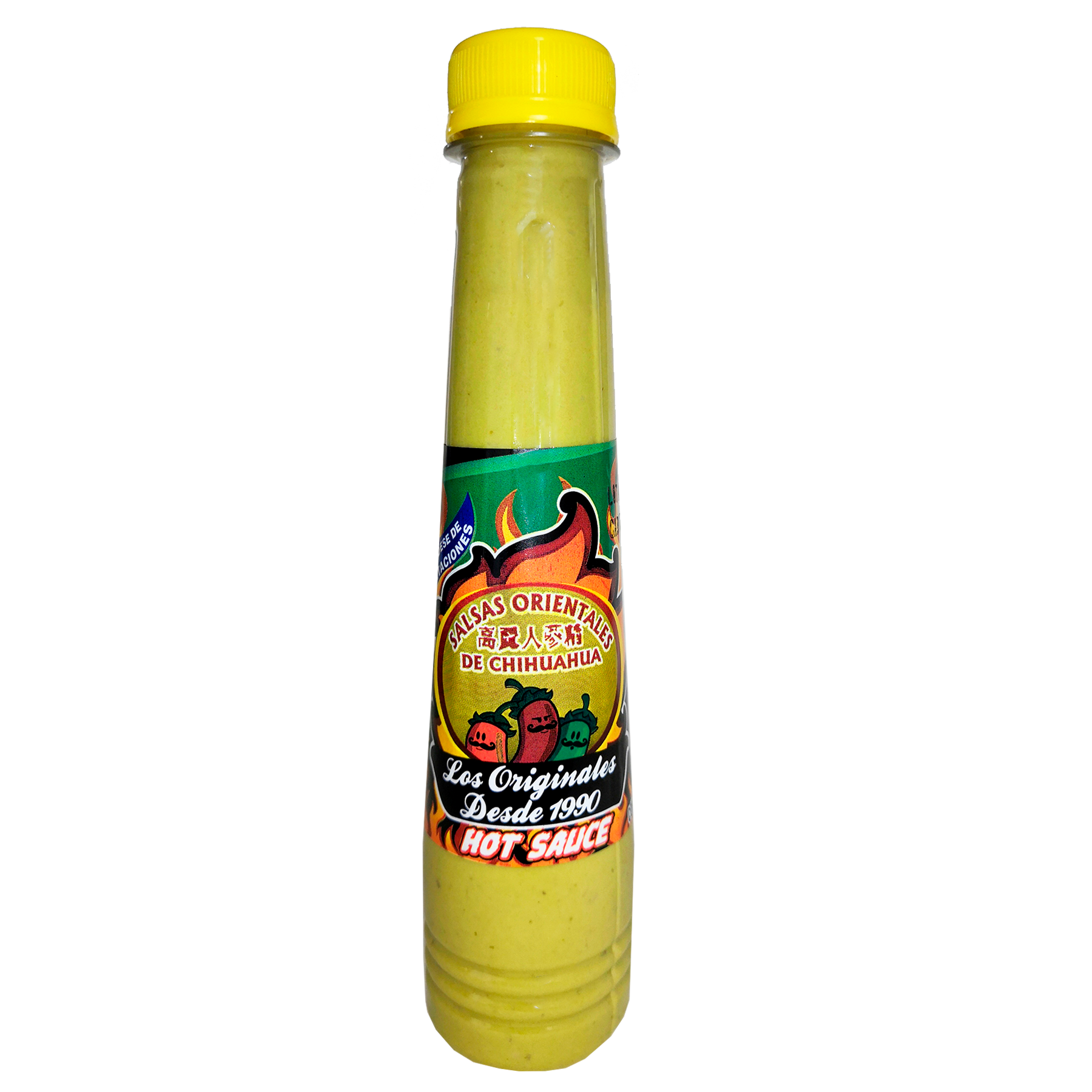 Nuestra Salsa Verde Oriental es elaborada con los mejores ingredientes seleccionados de Chihuahua, garantizando un sabor intenso y auténtico. Disfruta del sabor tradicional de la región en cada cucharada, con un toque de misterio que te dejará sin aliento.
